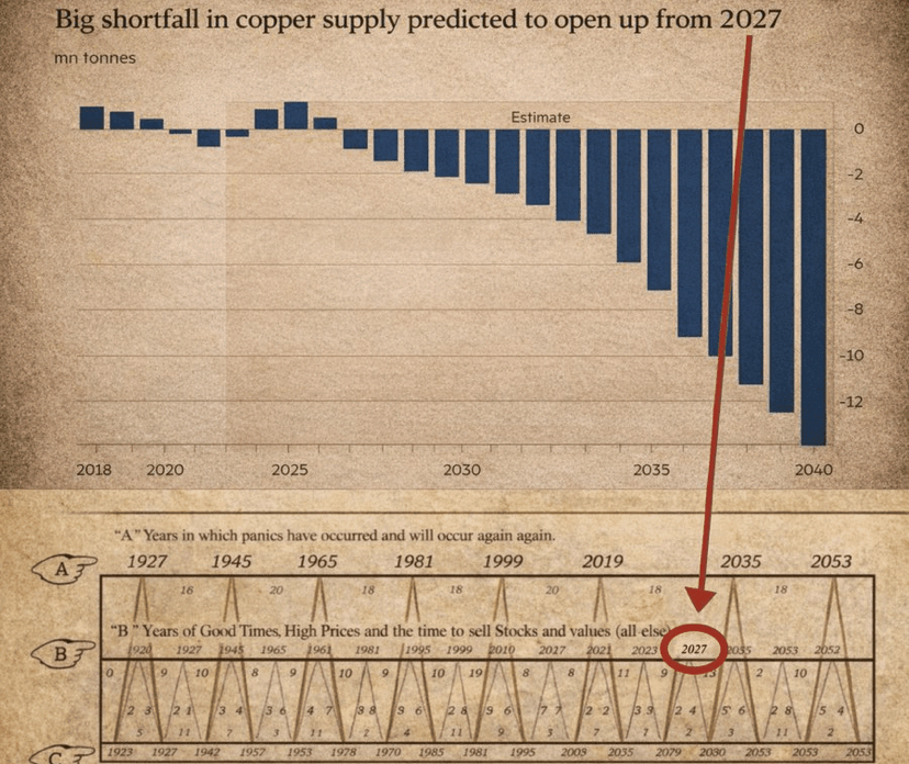 Это не хайп.С 2027 года мир столкнется с дефицитом меди — и он не уйдет.Ситуация ухудшается вплоть до 2050 года.Спрос растет.Предложение застряло.И этот дисбаланс постоянен.Новых шахт не будет.На утверждение и строительство одной уходит 17–20 лет.Даже если мы найдем огромный запас сегодня, это не будет иметь значения до 2040-х.Тем временем качество руды продолжает снижаться.Добыча становится сложнее, медленнее, дороже.Кроме того, ИИ меняет все.ИИ нуждается в безумных объемах энергии, охлаждения и проводки.Центры обработки данных быстро масштабируются, и сеть не может справиться с этим без огромных объемов меди.Добавьте электромобили, возобновляемые источники энергии и глобальную электрификацию —и мы пытаемся перестроить мировую энергетическую систему с металлом, который еще не был добыт.Когда давление достигнет предела, медь не будет просто "промышленной".Она станет стратегической.Компании не будут покупать ее ради маржи —они будут покупать ее лишь для того, чтобы продолжать работать.Я занимаю позицию заранее, прежде чем это станет очевидным.По сегодняшним ценам медь ощущается как подарок.Большинство людей проигнорируют это.Они обычно так и делают.А позже, как правило, сожалеют об этом.