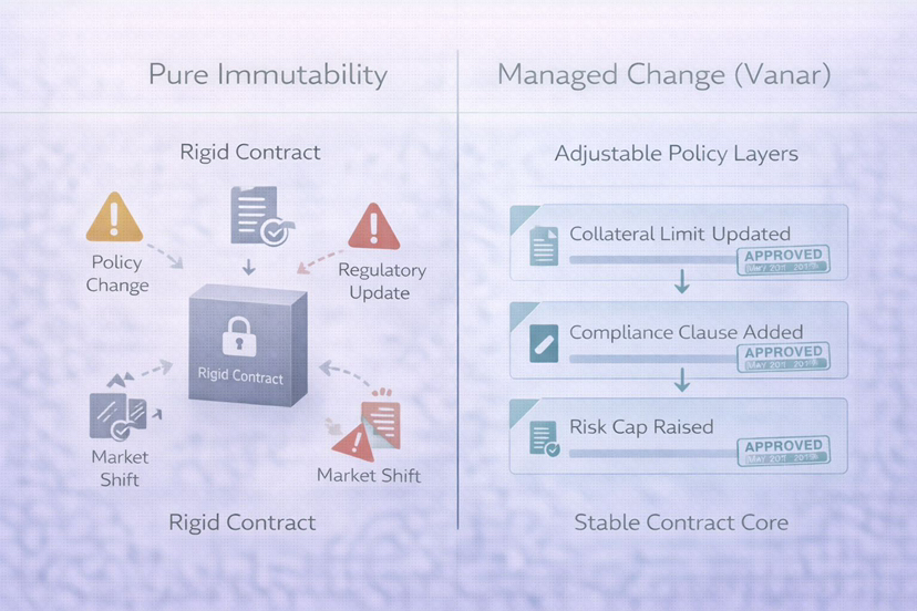 Most blockchains celebrate immutability as if it were the ultimate virtue. I used to buy into that idea as well. But the longer I have watched real finance up close, the more I have realized something uncomfortable. In the real world, change is constant. Rules evolve, regulations shift, risk thresholds move, and what was acceptable last quarter can suddenly become a liability today. Finance is not hard because it changes. It is hard because it must change without breaking trust.