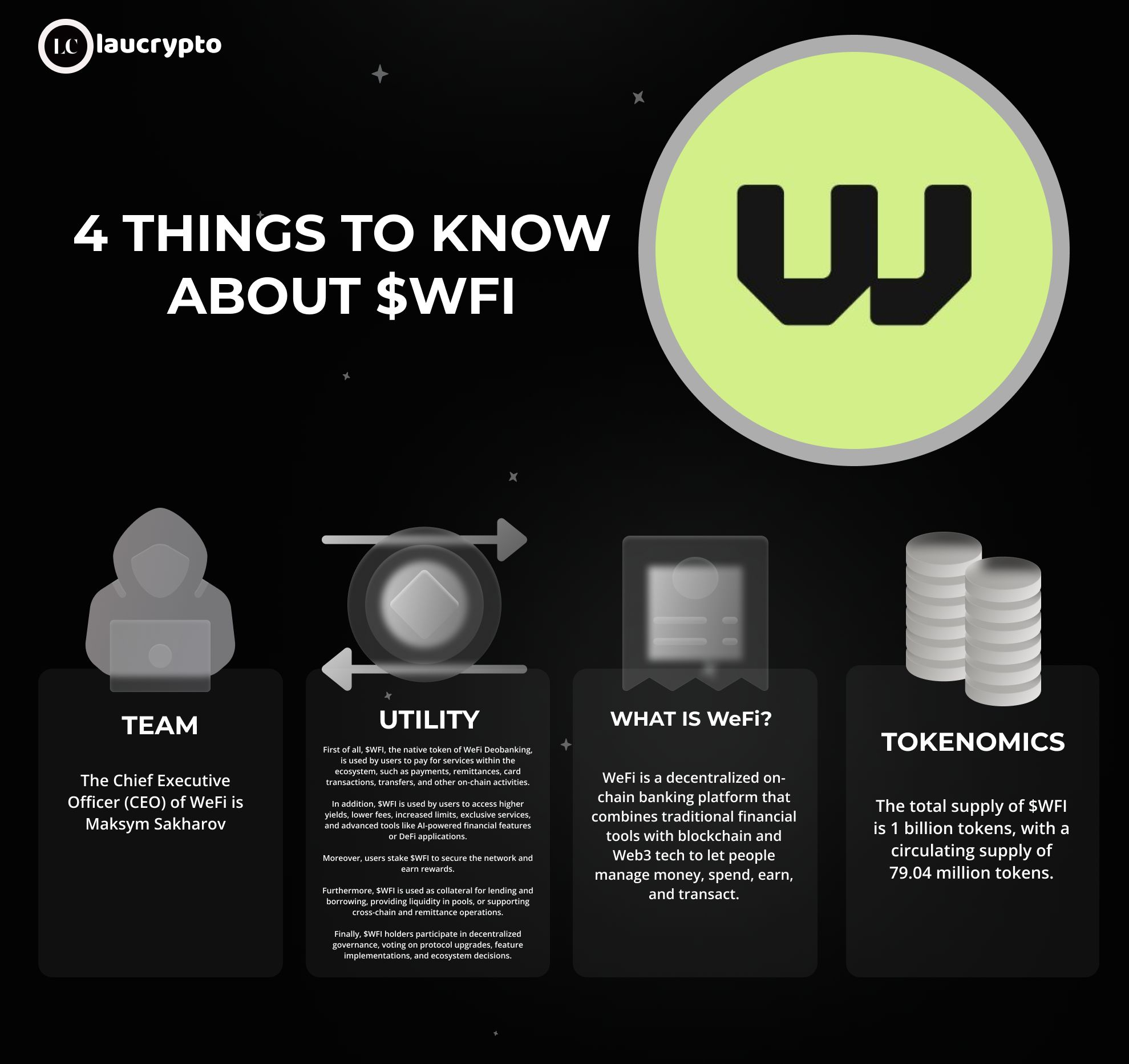 $WFI é o token nativo do WeFi, uma plataforma de banco descentralizado on-chain que combina ferramentas financeiras tradicionais com blockchain e tecnologia Web3 para permitir que as pessoas gerenciem dinheiro, gastem, ganhem e façam transações.