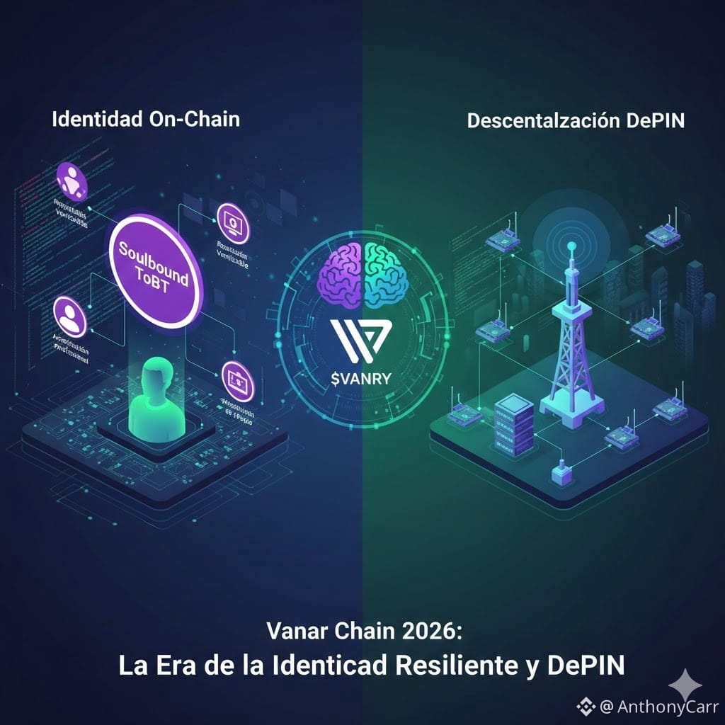 Vanar Chain en 2026 no es solo una L1 eficiente; es una arquitectura completa para la identidad digital soberana y la infraestructura descentralizada resiliente. Con su enfoque en SBTs dinámicos y un modelo DePIN híbrido, Vanar está construyendo los cimientos para una Web3 verdaderamente distribuida y centrada en el usuario, donde la reputación y la resistencia son las nuevas divisas.