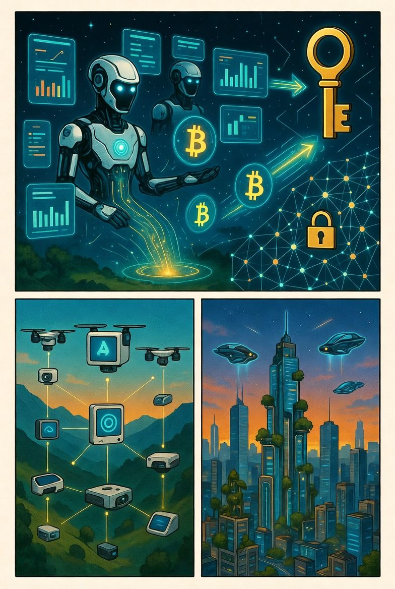 Hãy nghĩ về AI agents – những "robot" thông minh có thể tự giao dịch, xác minh và phối hợp hoạt động kinh tế mà không cần con người can thiệp. Đây là tâm điểm của sự hội tụ AI-crypto năm 2026. Theo Medium, crypto sẽ trở thành lớp tài chính cho các AI agents, cho phép chúng xử lý thanh toán, token hóa tài sản thực tế (RWA), và thậm chí tham gia vào thương mại kỹ thuật số tự động. Đồng thời, DePIN (Decentralized Physical Infrastructure Networks) – mạng lưới cơ sở hạ tầng phi tập trung – sẽ bùng nổ nhờ AI, cung cấp sức mạnh tính toán phân tán để hỗ trợ các mô hình AI lớn mà không phụ thuộc vào các trung tâm dữ liệu tập trung.