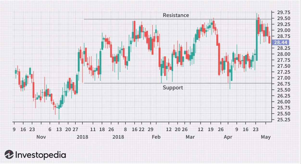 Support is the area where buyers repeatedly step in. Resistance is where selling pressure consistently returns. These are zones, not exact prices. What we need to do is to observe how price reacts when it reaches the zones.