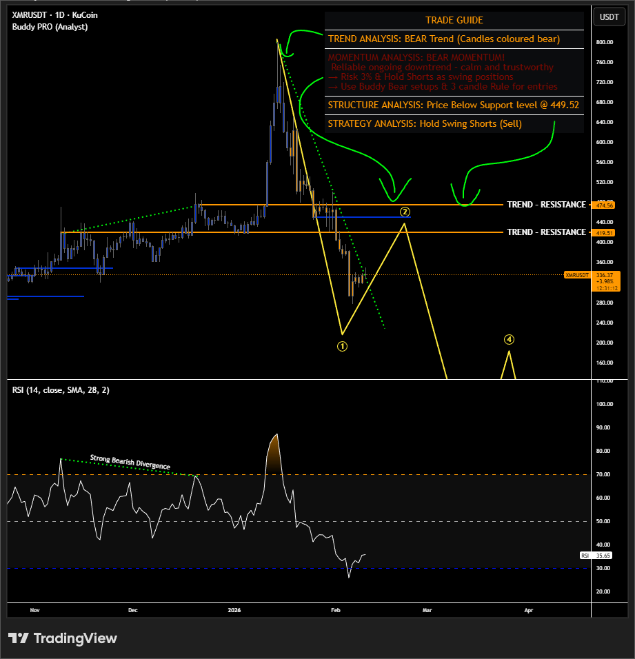 As long as price stays below reclaimed support, the path of least resistance points lower.