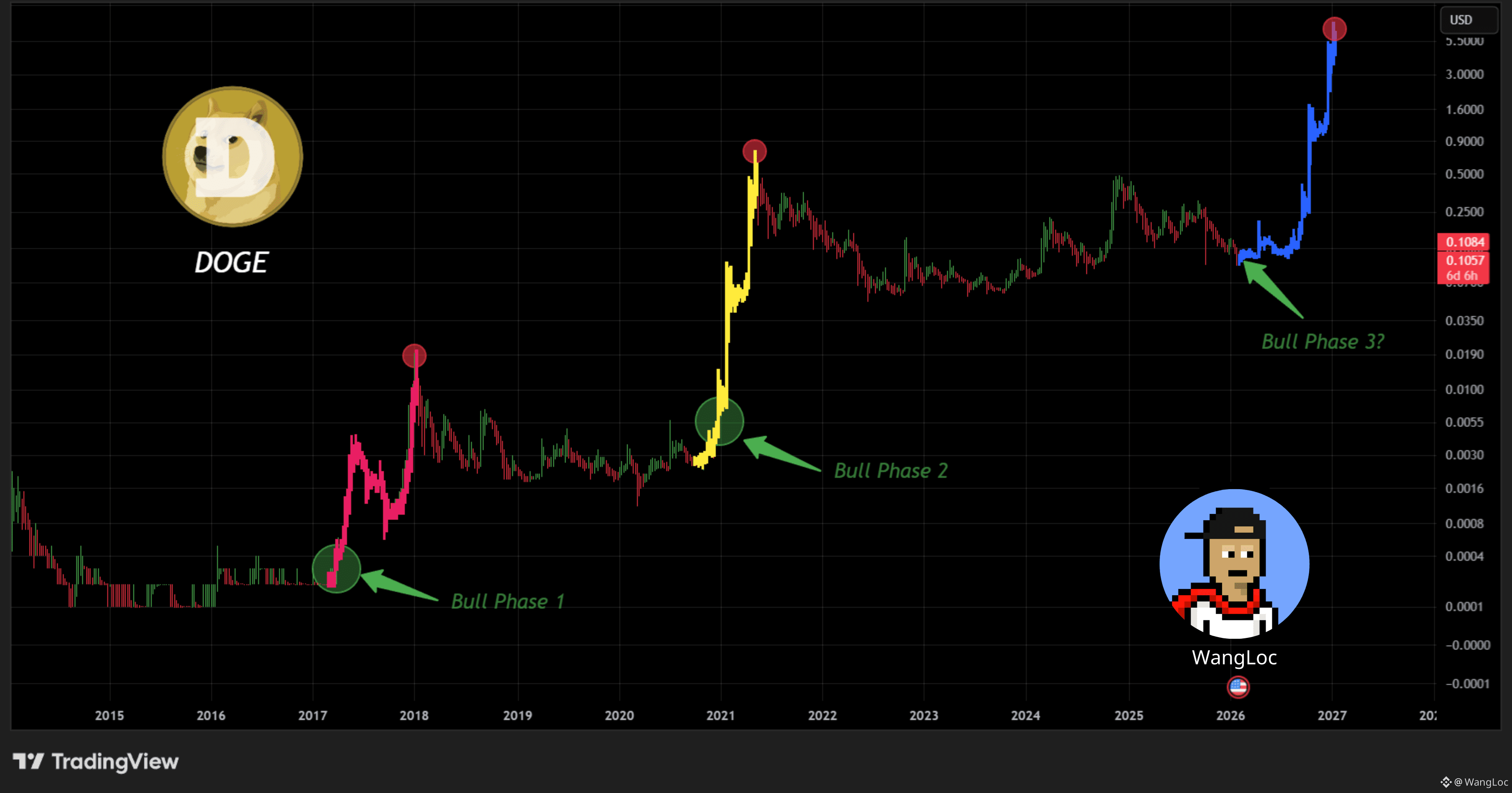 If this cycle continues to rhyme with history, Dogecoin could still have significant upside ahead, with the ~$5 zone emerging as a long-term cycle target.