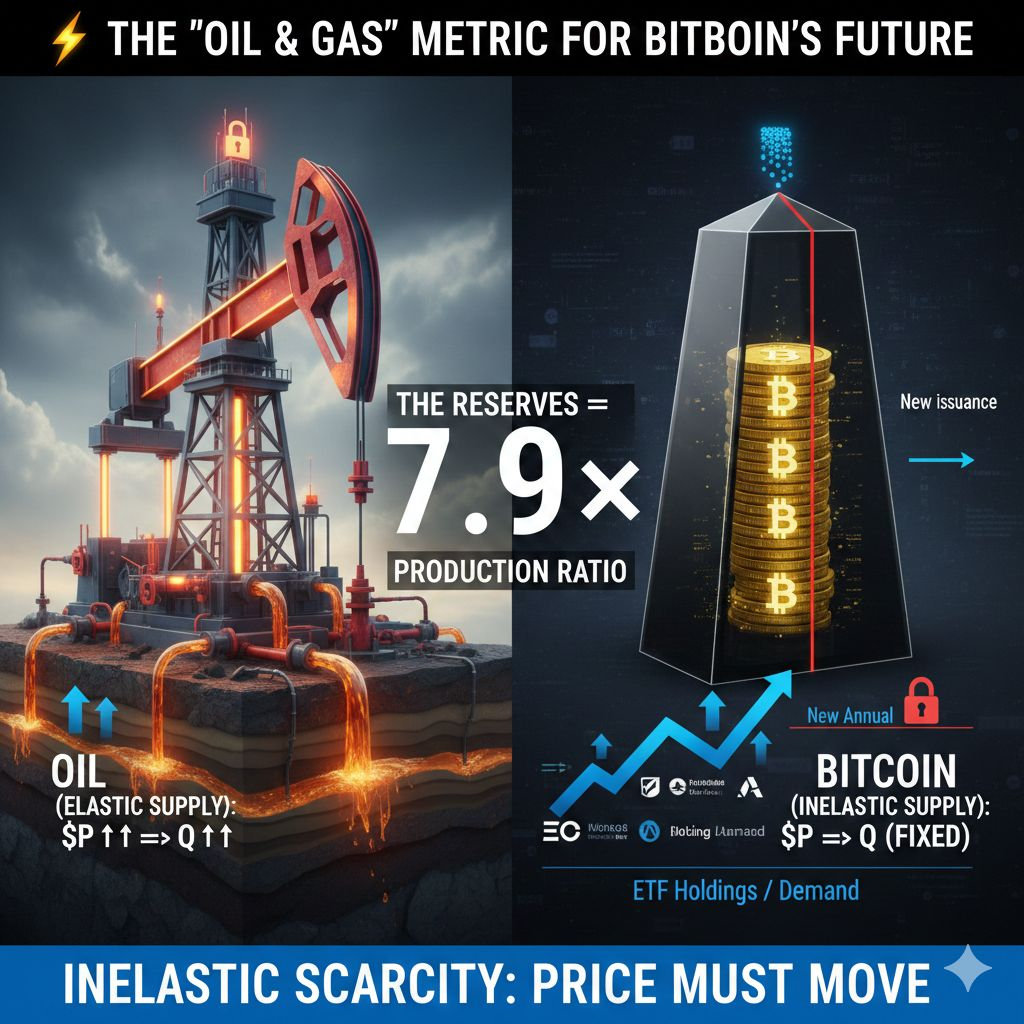 In the energy world, this tells you exactly how long your inventory lasts before the wells run dry. But when you apply this engineering logic to Bitcoin, the math gets aggressive.