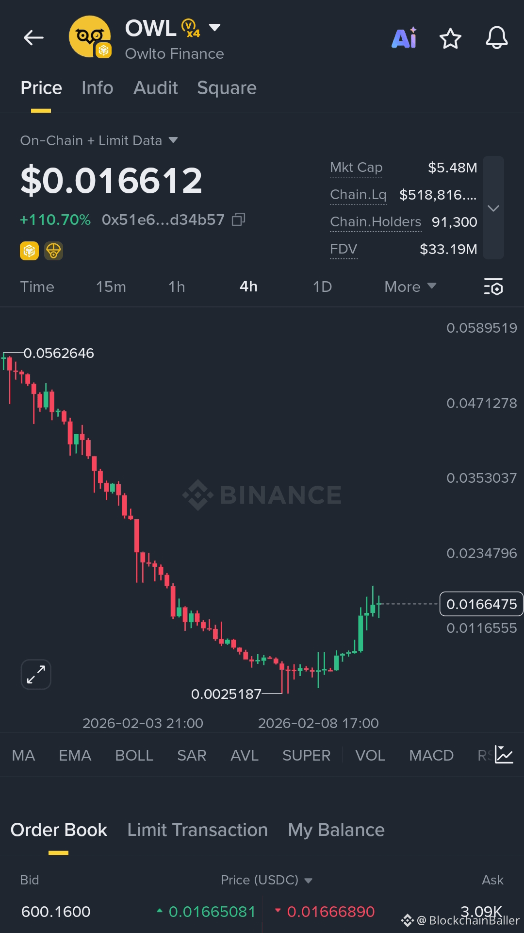 $OWL /USDT, the price recently made a strong recovery after a long downtrend. OWL dropped from higher levels and formed a bottom near 0.0025. Now it is trading around 0.0166 with a big bullish move. This shows buyers are returning with strong momentum. If the price holds above 0.015 support, the next resistance could be near 0.020–0.025. However, volatility is high, so a pullback is also possible. Trade carefully with proper risk management.