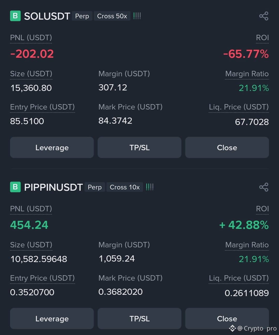 $SOL /USDT is currently in a loss, showing the market moved slightly below the entry price near 85.5. This suggests short-term weakness and possible further downside if support is not held. On the other side, PIPPINUSDT is in profit with strong upward movement above the entry level. This shows bullish momentum in that coin. Overall, the market remains volatile, so traders should use stop-loss and manage leverage carefully. Always trade with proper risk control.