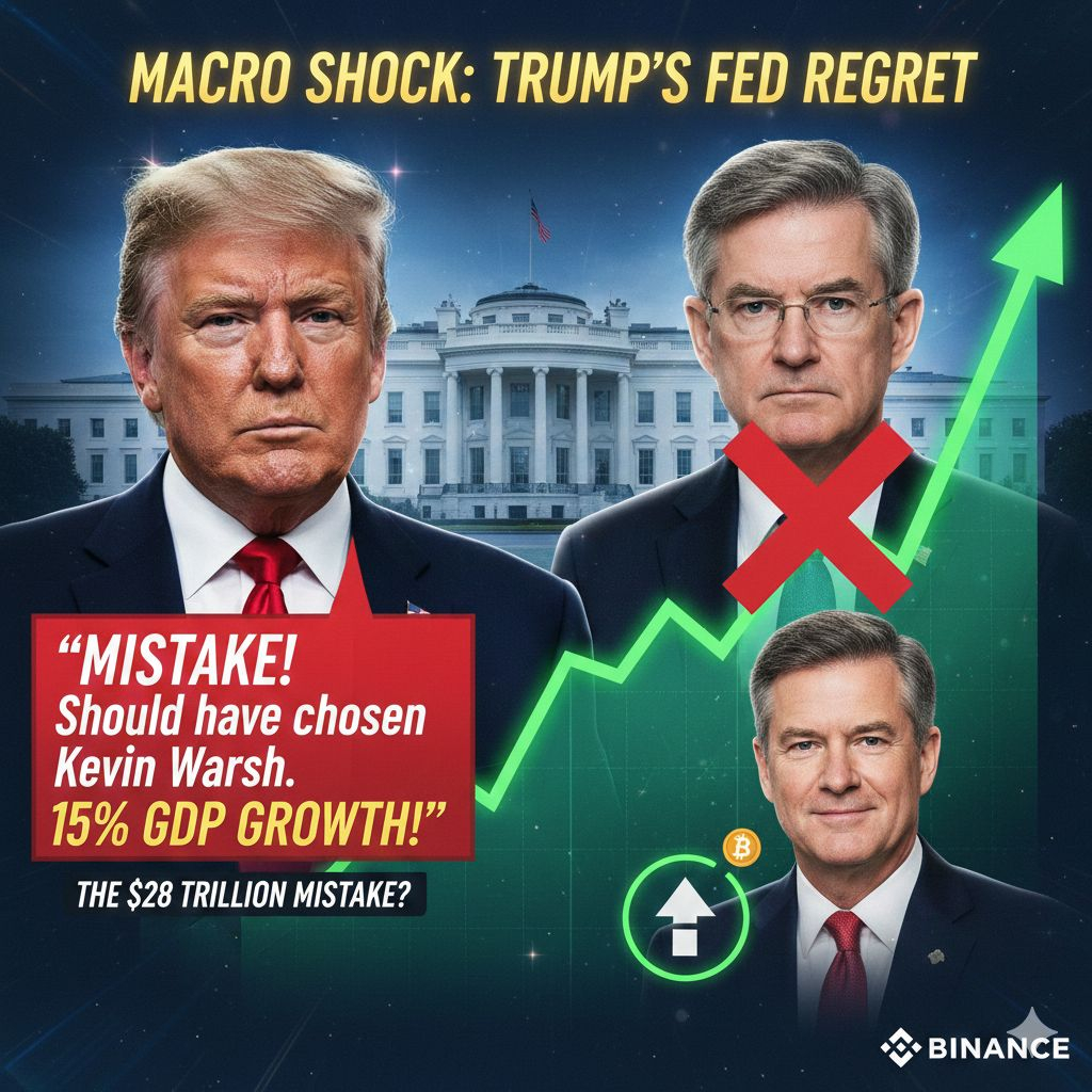 Donald Trump just dropped a macro bombshell. He publicly stated that passing over Kevin Warsh for Fed Chair was a mistake—claiming Warsh’s policies could have boosted the U.S. economy by 15%.