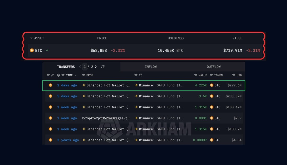In the world of crypto, "Safe" is more than a feeling it’s a fund. Binance has reached a major milestone in its mission to safeguard the community. The Secure Asset Fund for Users (SAFU) has officially boosted its Bitcoin reserves, adding 4,225 BTC (approx. $300M) to its coffers, bringing the total holdings to a staggering 10,455 BTC.
