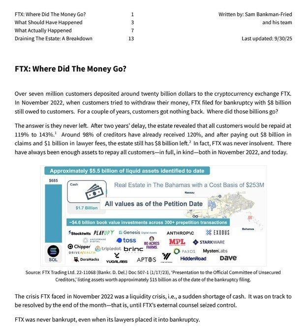 It further claims the government and bankruptcy estate misrepresented FTX’s financial data, excluded billions in assets, and presented a false narrative of missing customer funds, despite customers later being repaid 119–143% ⬇️