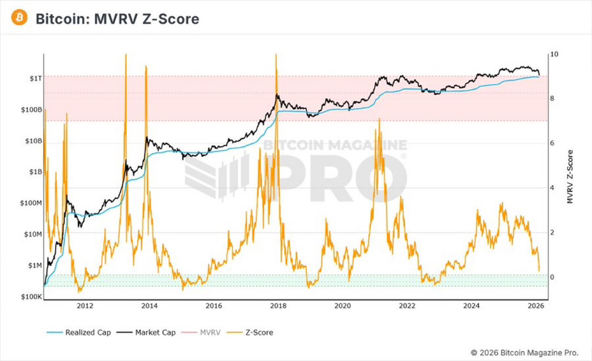 MVRV Z-Score đo: Mức độ chênh lệch giữa giá thị trường của Bitcoin (Market Value) và giá vốn on-chain của toàn bộ holder (Realized Value)