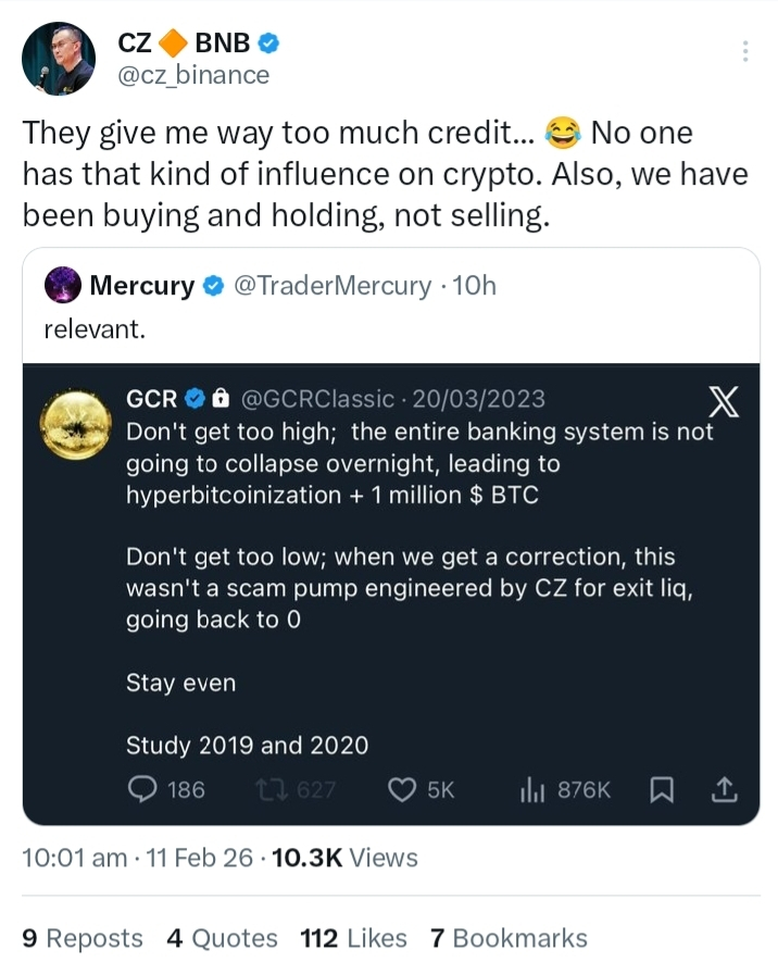 Binance co-founder CZ says he’s getting too much credit for crypto market moves — and pushed back on claims of manipulation.