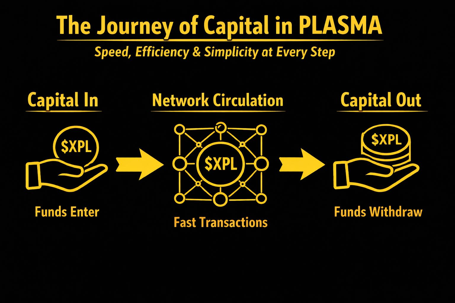 Em seguida, esse capital passa a circular dentro da rede, onde as transações são processadas com extrema velocidade. Aqui, a PLASMA faz seu melhor trabalho: organiza, valida e confirma cada operação em menos de um segundo, sem gargalos, sem atrasos e com taxas mínimas. Esse percurso é rápido, fluido e transparente, garantindo que o capital esteja sempre em movimento contínuo, pronto para cumprir sua função.