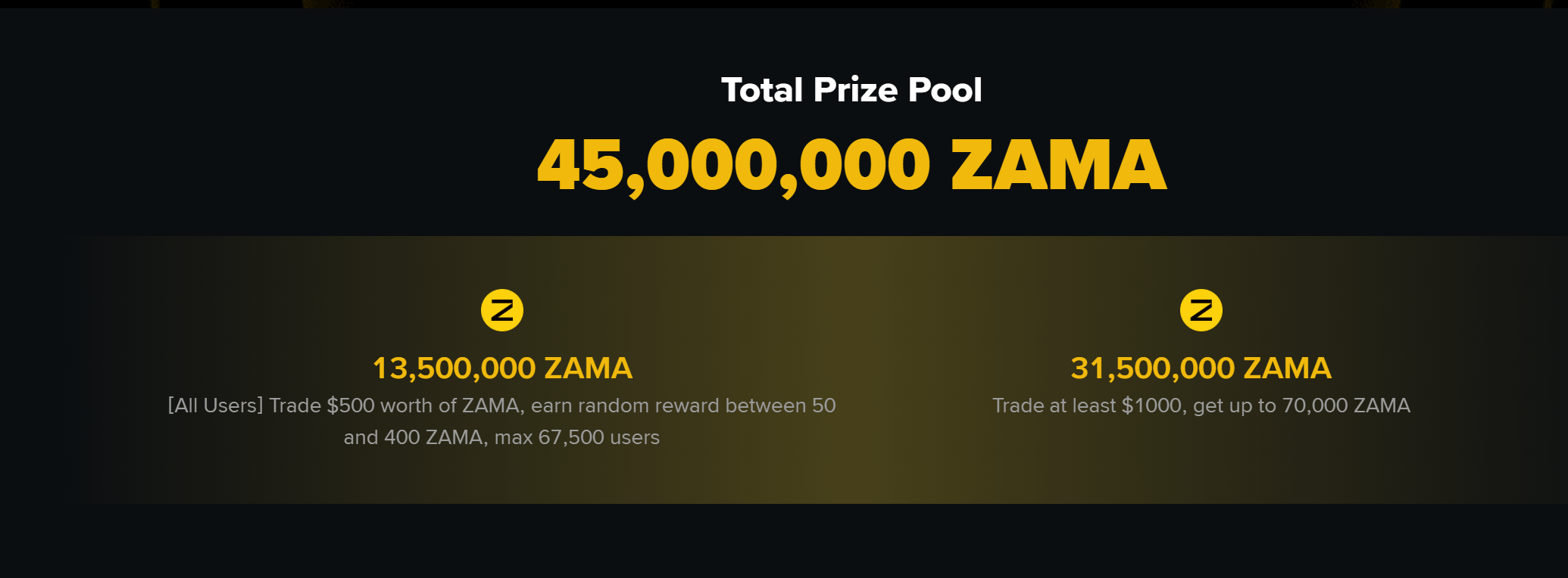 Nhiệm vụ 1: Trade tối thiểu 500$ $ZAMA để nhận ngẫu nhiên từ 50-400 token mỗi ví.