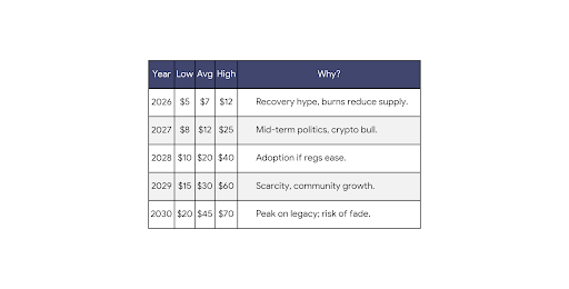 By 2030, avg $45 feels possible if trends hold – some say $8, others $100+ in bulls!