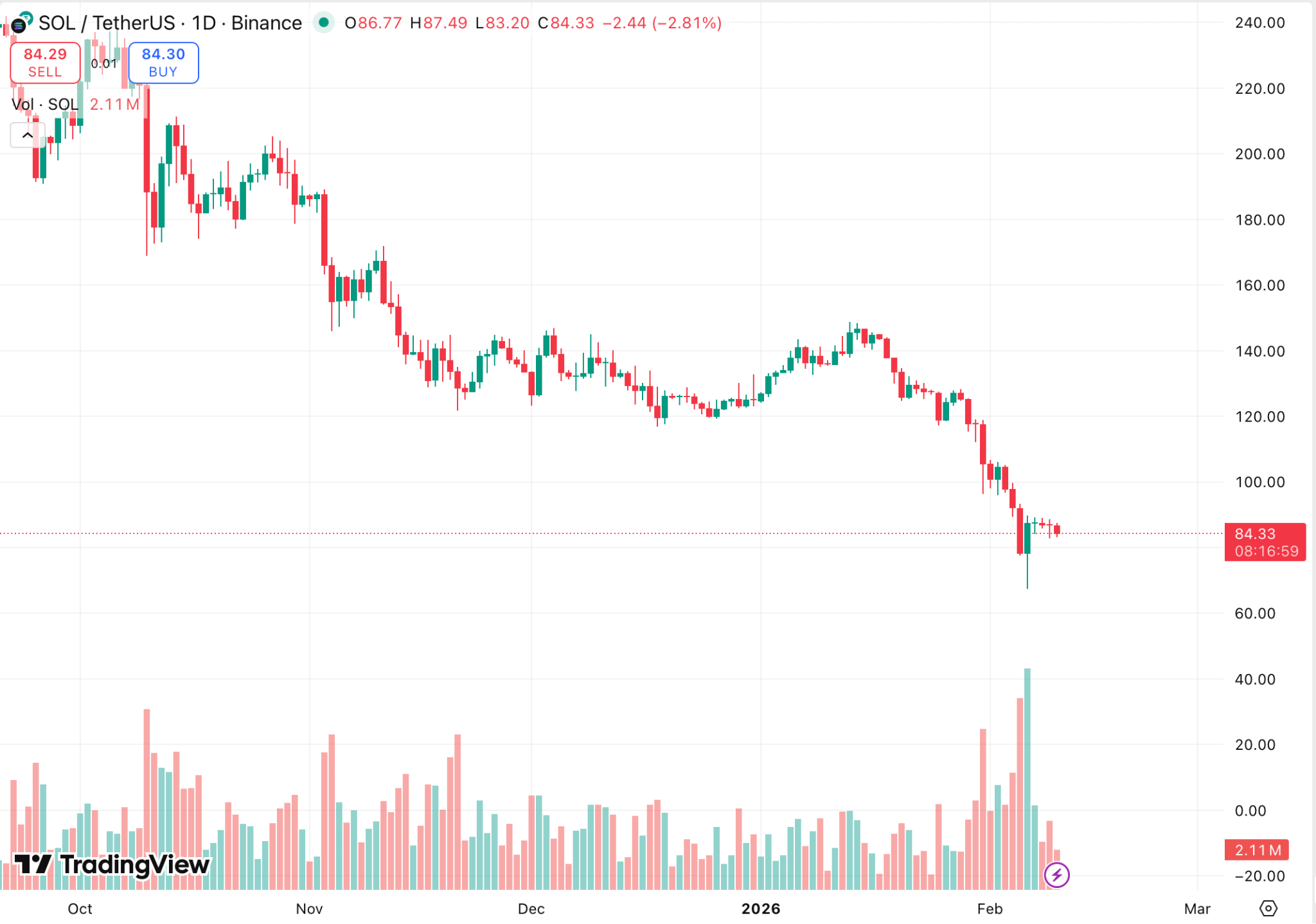 Тим часом Solana продовжує падіння, на момент публікації ціна коливається біля 80$.