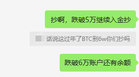 我毫不犹豫的回答她:抄啊!跌破6万拿账户余额抄;要是跌破5万,我继续入金抄。