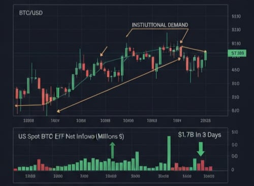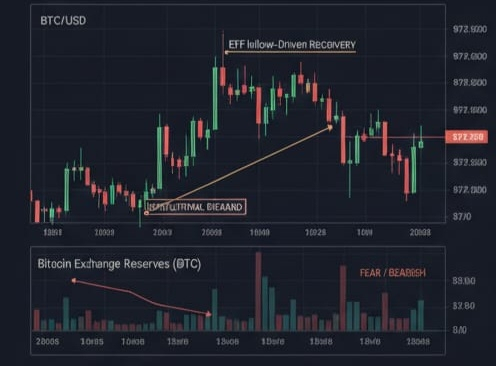 After Bitcoin dropped nearly 50% from its late-2025 highs, sentiment turned bearish. The recovery didn’t begin with optimism it began with fresh liquidity through ETF inflows. Institutional buying strengthened the market’s ability to absorb selling pressure.