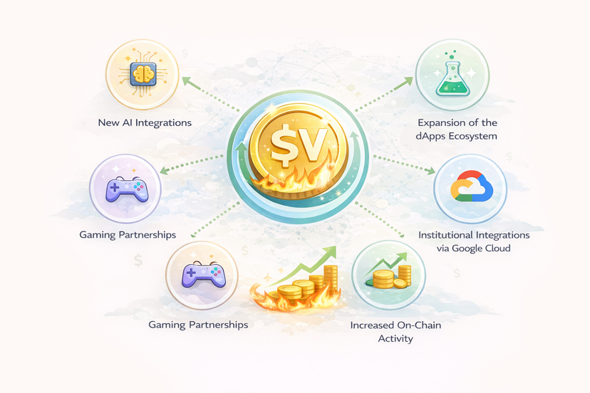 У реальному використанні це можуть бути AI-ігри нового покоління, де NPC пам’ятають гравця та адаптуються до його стилю, AI-агенти у Web3 для трейдингу, DeFi чи управління DAO, створення персоналізованого контенту всередині dApps, а також розвиток сильної gaming-екосистеми, яка може стати драйвером adoption. Токен $VANRY використовується для оплати gas fee, сервісів і має механіку спалювання, тому при зростанні активності мережі може зростати попит і формуватися потенційний дефляційний ефект.