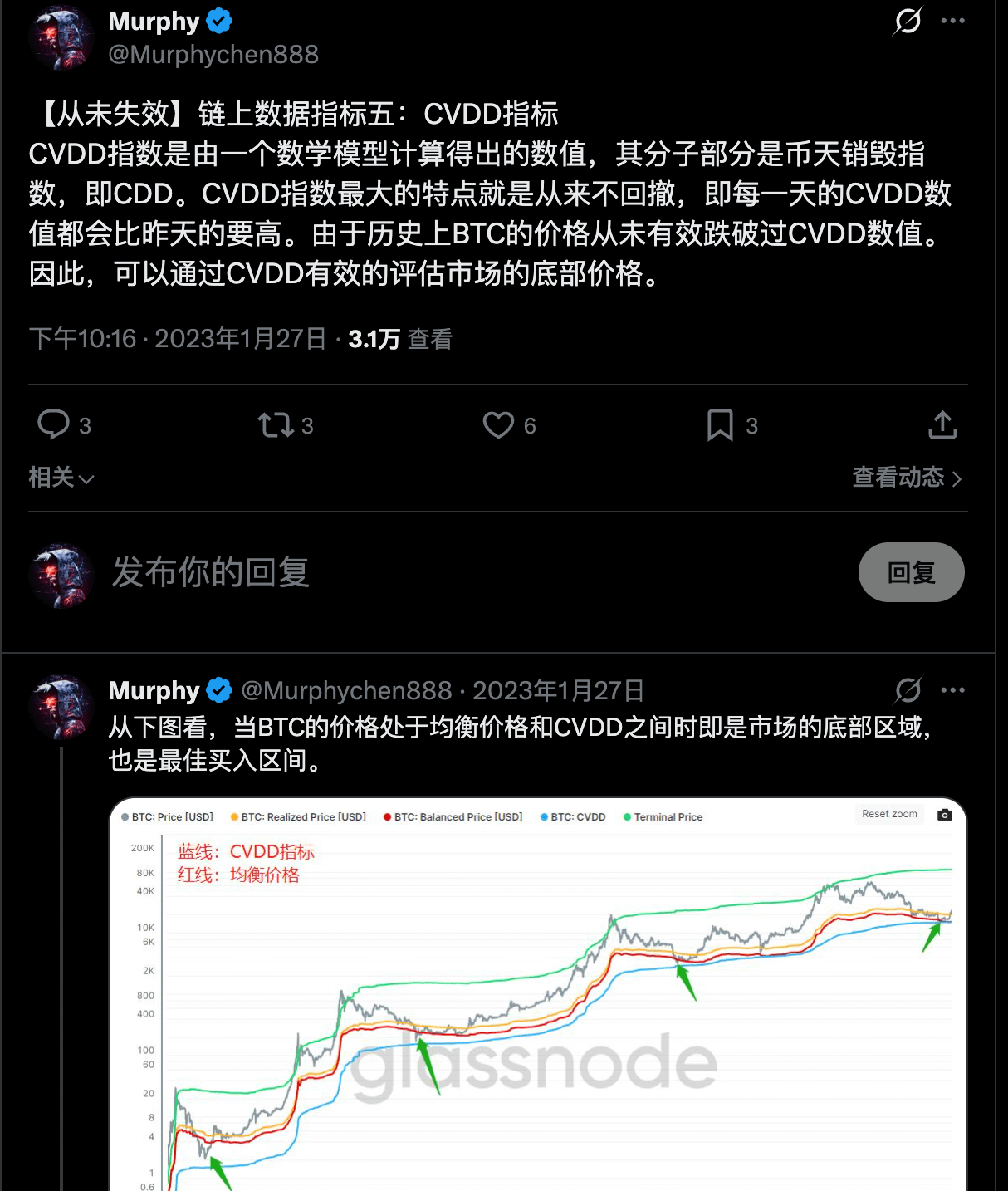 2023年1月27日,我写过一篇推文 —— 从未失效的链上数据指标,希望从多角度来阐述已确立的 $BTC 熊底形态,如今我们回看当时,尽管在文字描述和图案标注上略显粗糙和稚嫩,但文中所述内容时至今日仍然有效。
