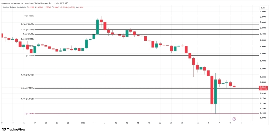 A break below $1.37 could expose XRP to $1.26. Losing that level may invalidate the constructive outlook and open the path toward $1.12 under continued market weakness.