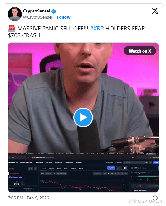 The $XRP community is on edge as a "massive panic sell-off" sweeps through the market. Noted commentator CryptoSensei is sounding the alarm after XRP’s market cap plummeted from a peak of nearly $180B to below $90B—a staggering $70B+ correction that has left many questioning the bottom.
