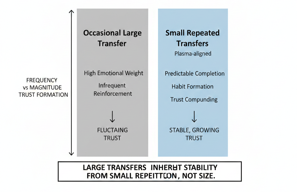 When small payments feel solid, users increase frequency. When frequency increases, familiarity deepens. When familiarity deepens, trust stabilizes. Large transfers then inherit that trust naturally.