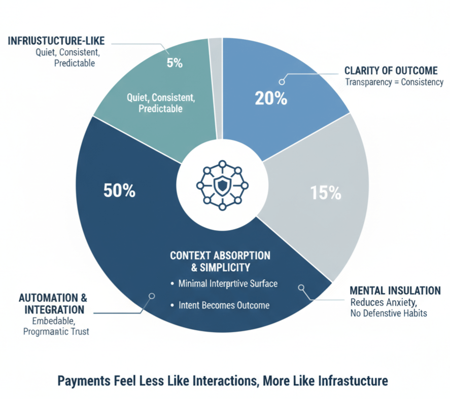 When context leaks into the user experience, users start interpreting payments. They think about congestion. They anticipate variation. They wonder whether current conditions are favorable. Even if those interpretations don’t change the outcome, they change behavior.