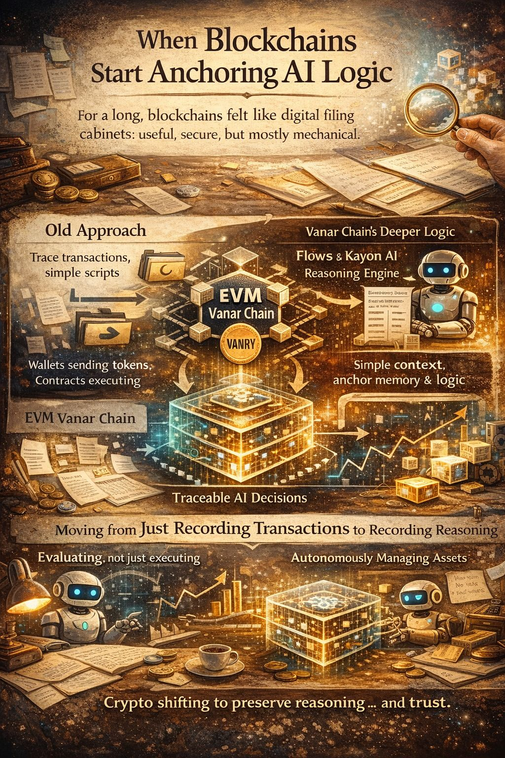 The quiet transformation isn’t about speed or scale alone. It’s about what blockchains are choosing to preserve. As crypto begins to store reasoning alongside transactions, the networks that anchor logic may end up anchoring trust as well.$VANRY @Vanarchain #vanar