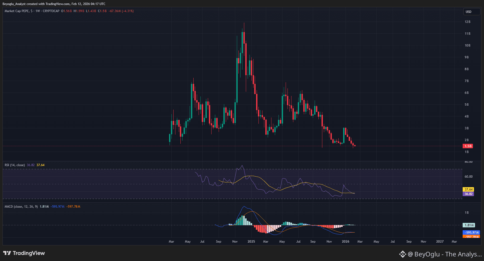 Similarly PEPE has market cap has been down nearly 90% from the top of 2024.