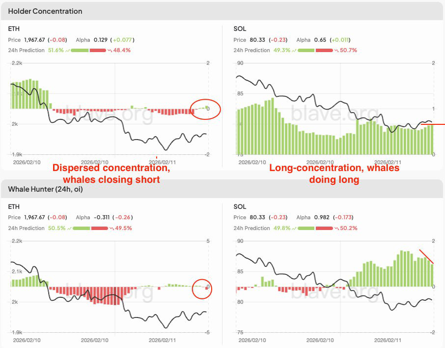 ETH and SOL remain relatively weak, with whales continuing to build short exposure.