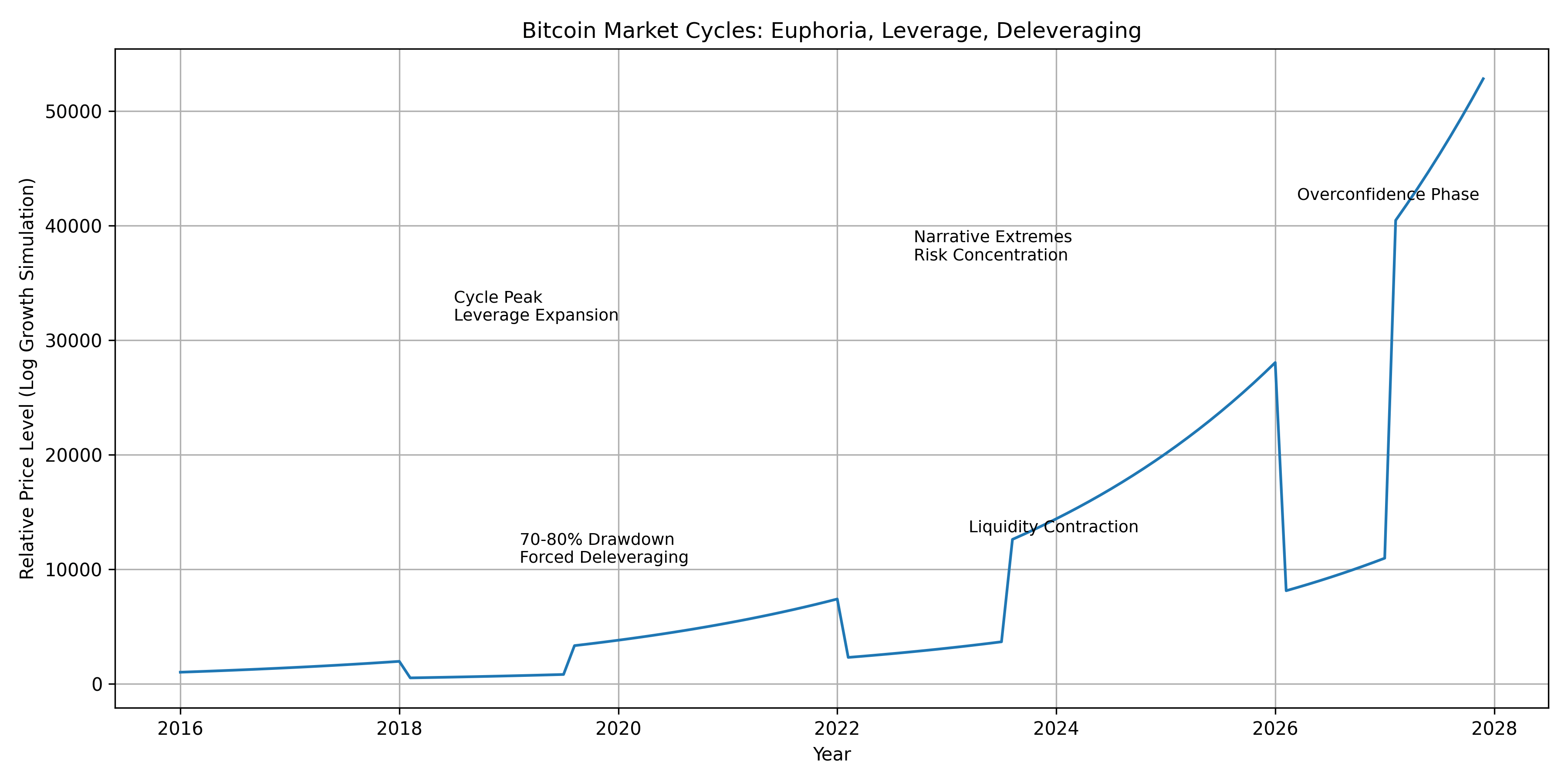 The real lesson of this chart is not that Bitcoin crashes. It is that cycles amplify human behavior.