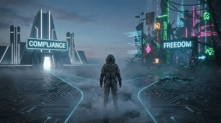 而夹在中间那些**“既不合规、又不去中心化”**的项目,确实会像作者预言的那样,灰飞烟灭。
