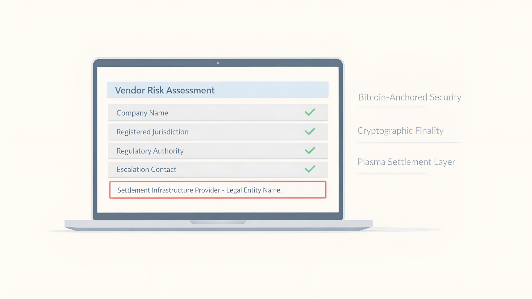 “I’m stuck on the Plasma vendor assessment. The settlement security model doesn’t map to our documentation categories.”