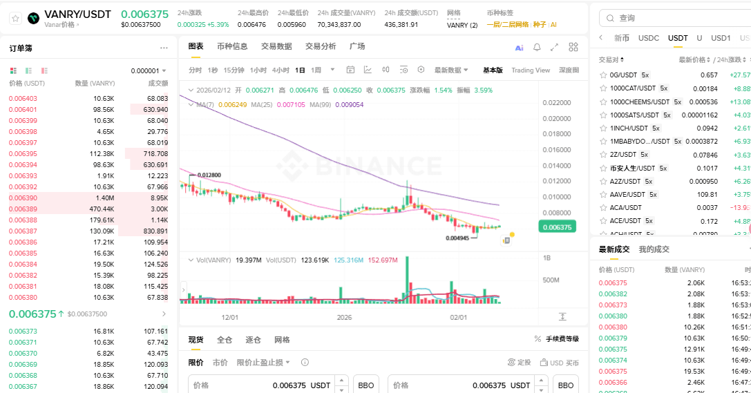 看看 $VANRY 的盘面,还在 $0.006左右趴着