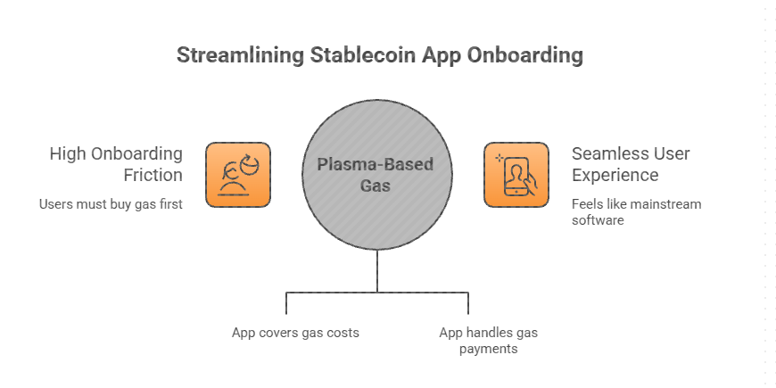 Stablecoin apps struggle because the first step requires buying gas. The onboarding flow becomes a tutorial about blockchain mechanics.
