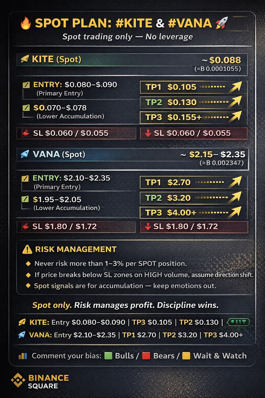 ✅📌 VANA (Spot) – Entry / TP / SL Plan