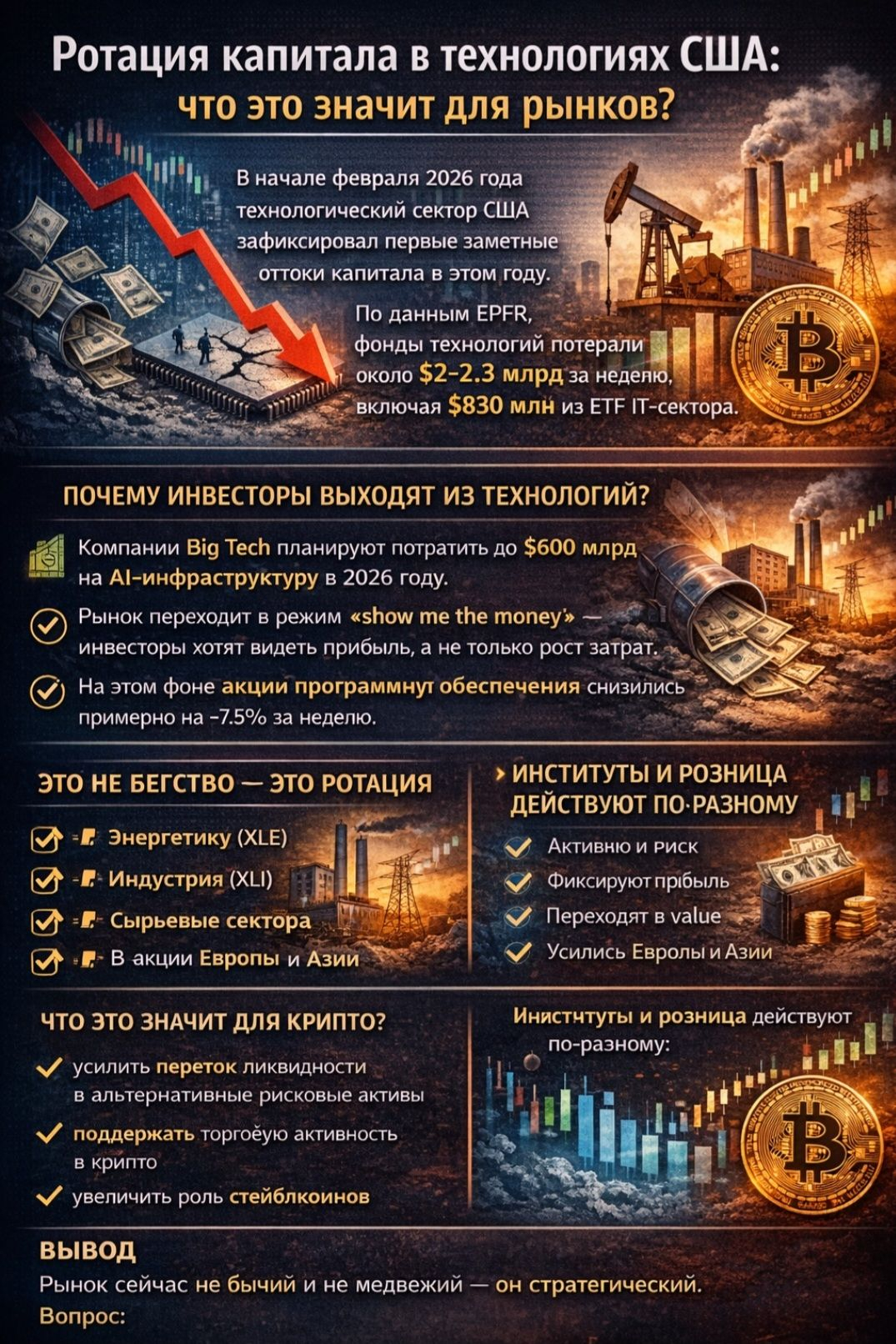 В начале февраля 2026 года технологический сектор США зафиксировал первые заметные оттоки капитала в этом году.