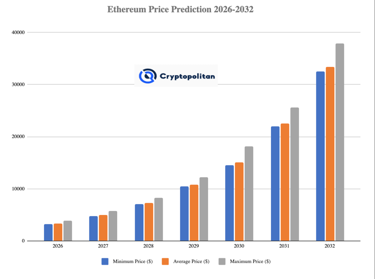Bar projections like this one visualize the moderate-to-bullish path minimums in the low $4K range, averages climbing steadily, maxes teasing higher if adoption accelerates.