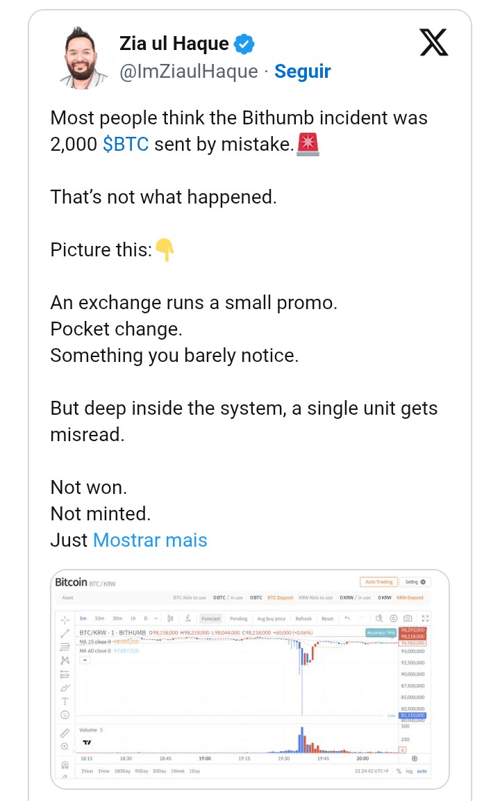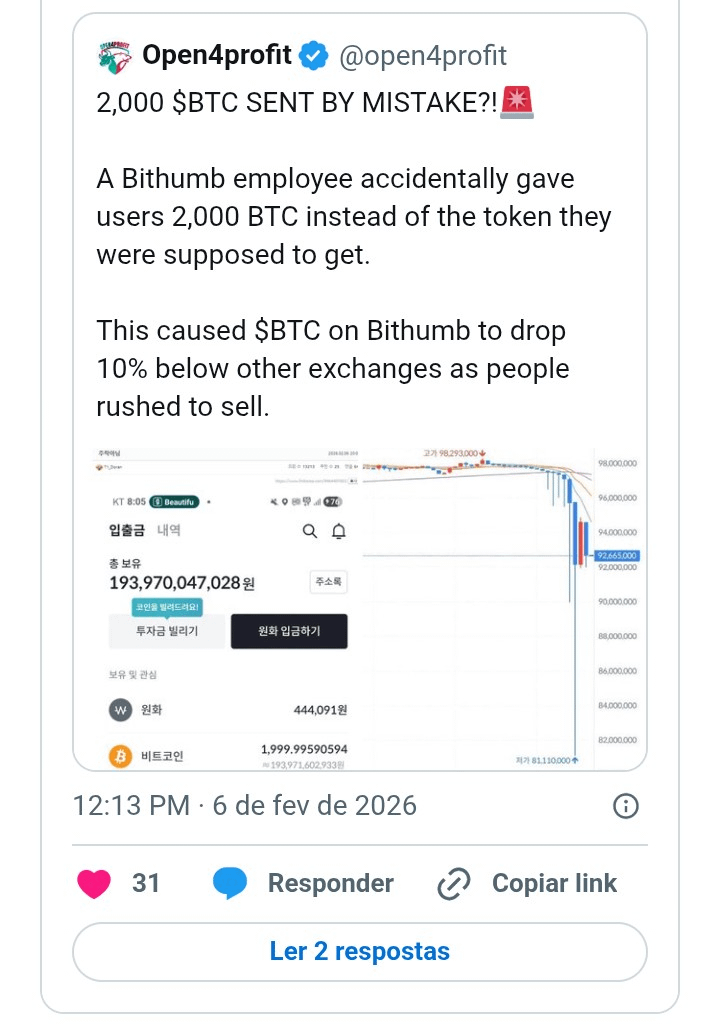 O rolo aconteceu porque, em vez de colocar o prêmio em won (a moeda deles), um funcionário acabou digitando em bitcoin. Resultado: em vez de distribuir uns trocados, o sistema despejou bilhões de dólares em moeda digital. Pra você ter ideia, era mais bitcoin do que a própria empresa tinha guardado!
