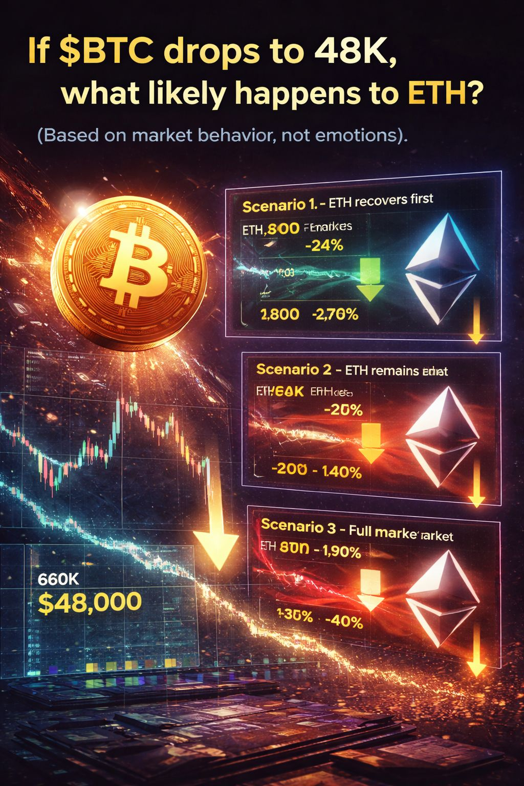 So ETH didn’t just follow Bitcoin — it moved harder, roughly 1.2–1.3x more volatile, largely due to leverage, liquidations, and panic selling.