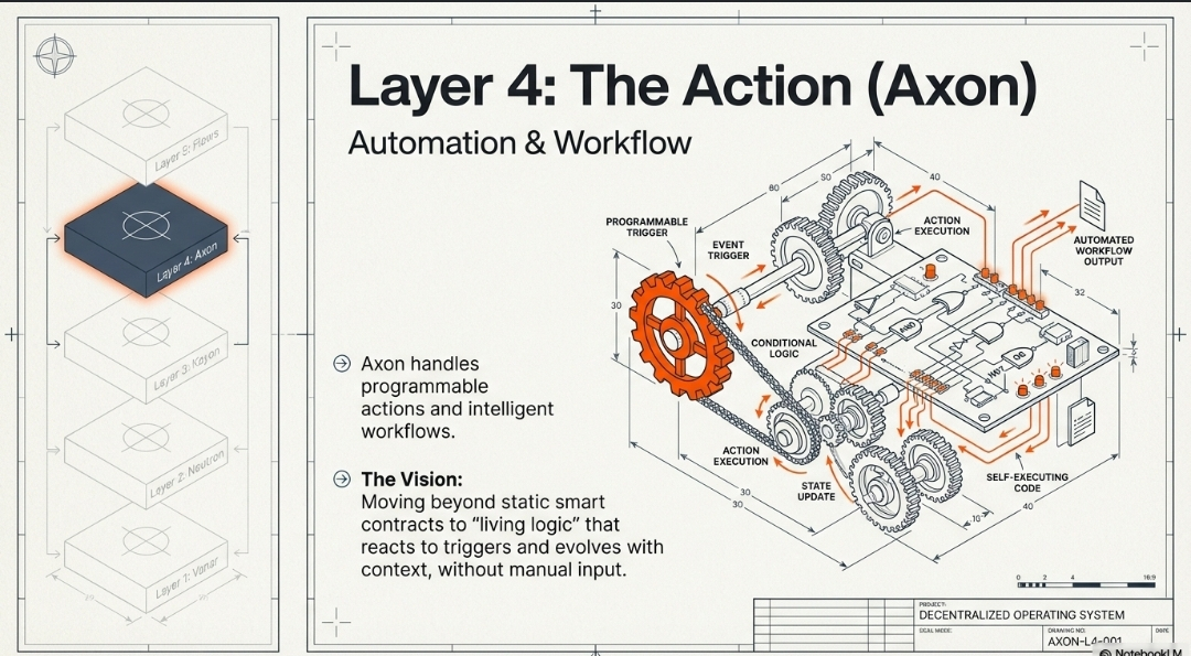 Axon: Short for automation, this layer is expected to handle programmable actions and intelligent workflows that react to triggers or conditions without manual input. While still early, the vision here is solid: move beyond static contracts into logic that can evolve with context.