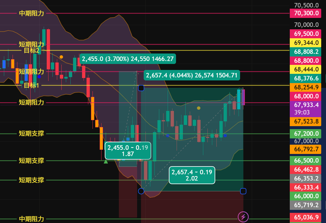 68,000:即时阻力(生死劫)。全场焦点! 昨天的支撑,现在的压力。站不上去就是“死猫跳”。