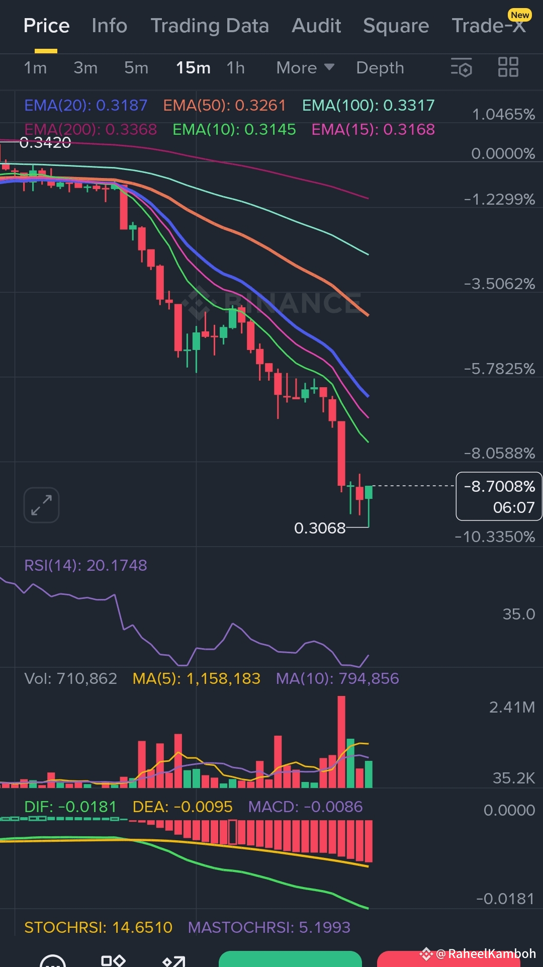 · đ Trend & EMAs: Price is getting absolutely SMASHED below ALL key Exponential Moving Areas! EMA(10) at 0.3222? Rejected. EMA(20) at 0.3187? Annihilated. EMA(200) at 0.3368? A distant memory. This isn't a dip; it's a full-blown avalanche. The hierarchy is Bearish. The path of least resistance is DOWN. đ»