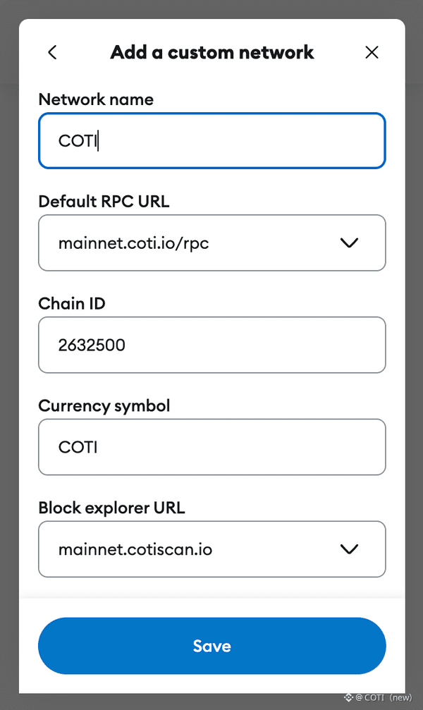 • Default RPC URL: https://mainnet.coti.io/rpc