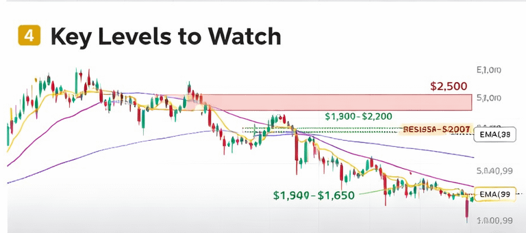 For momentum shift, ETH must first break and close above the $2,100–$2,200 EMA resistance zone.