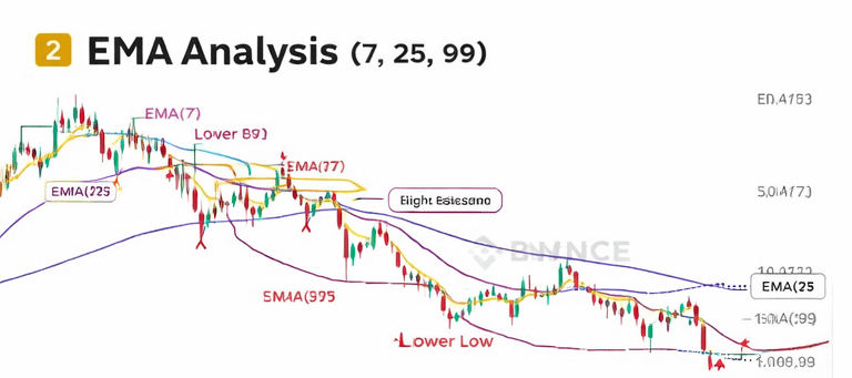 2️⃣ EMA Analysis (7, 25, 99)
