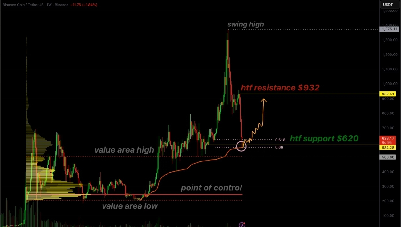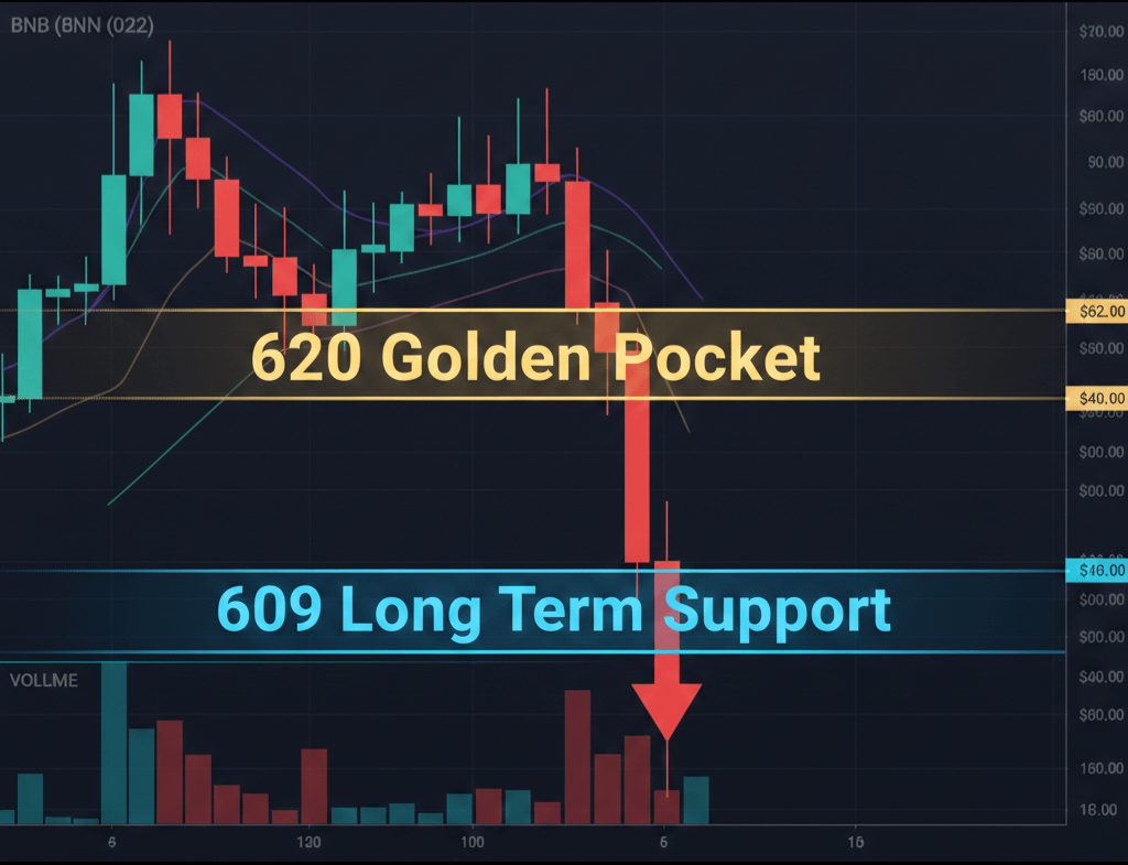 $BNB price slips below $620 golden pocket, now testing long-term support near $609