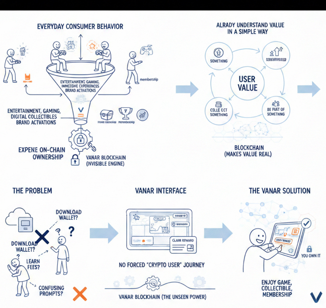 When I look at Vanar, I don’t see a blockchain trying to impress the usual crypto crowd with buzzwords or chasing attention through the same liquidity games everyone else plays. I see a project that’s trying to solve a much more practical problem, which is how you take people who already love digital experiences and move them into true on-chain ownership without forcing them to become “crypto users” first, because the truth is most people will never wake up excited to download a wallet, learn gas fees, or sign confusing prompts just to enjoy a game, a collectible, or a membership experience.