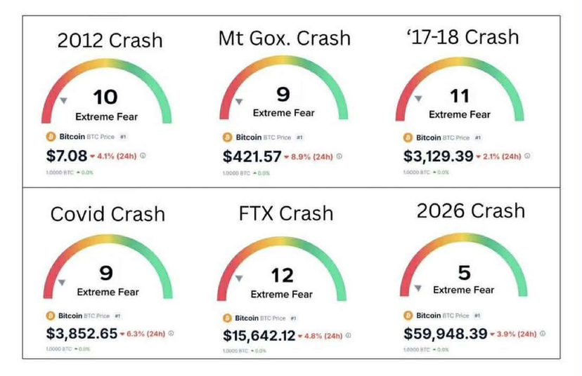 The reason the Fear & Greed Index can reach historically low levels today is not a single catastrophic event, but the accumulation of tightening liquidity, unresolved trauma from prior crashes, repeated failed expectations, and investor exhaustion, all of which compress sentiment faster than price alone would suggest.